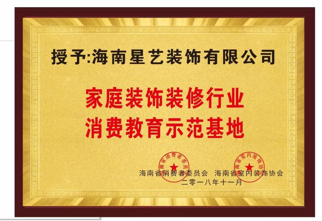 海南星藝裝飾有限公司 “家庭裝飾裝修行業(yè)教育示范基地”